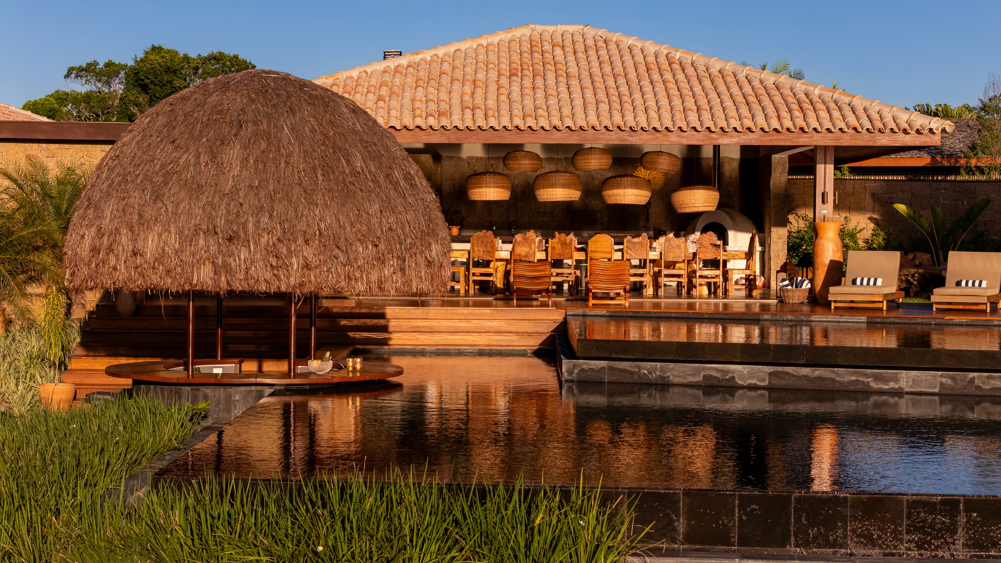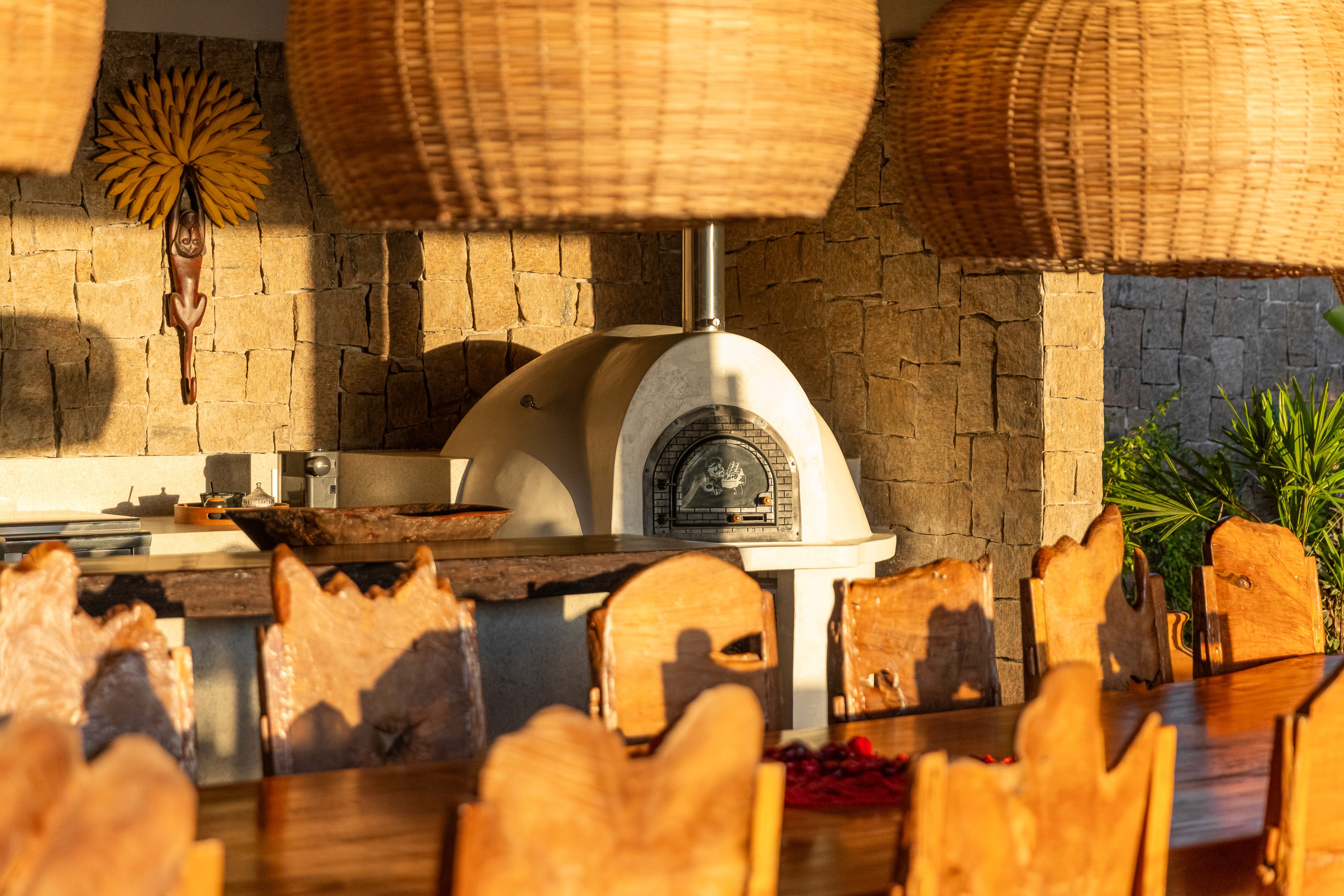 The Outdoor Pavilion is a refined open-air sanctuary where relaxation and conviviality come together. Featuring a spacious dining area, a swim-up bar, and a wood-fired pizza oven, it offers the perfect setting for shared moments under the open sky. Luxurious lounge chairs invite you to unwind by the pool, while the seamless blend of nature and comfort creates an atmosphere of effortless elegance and indulgence.