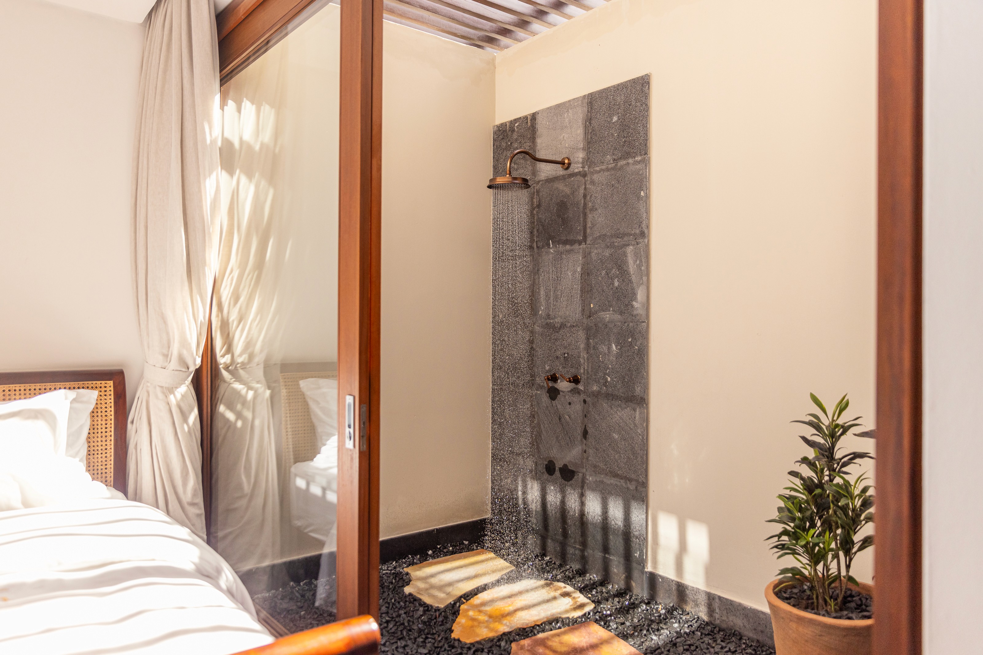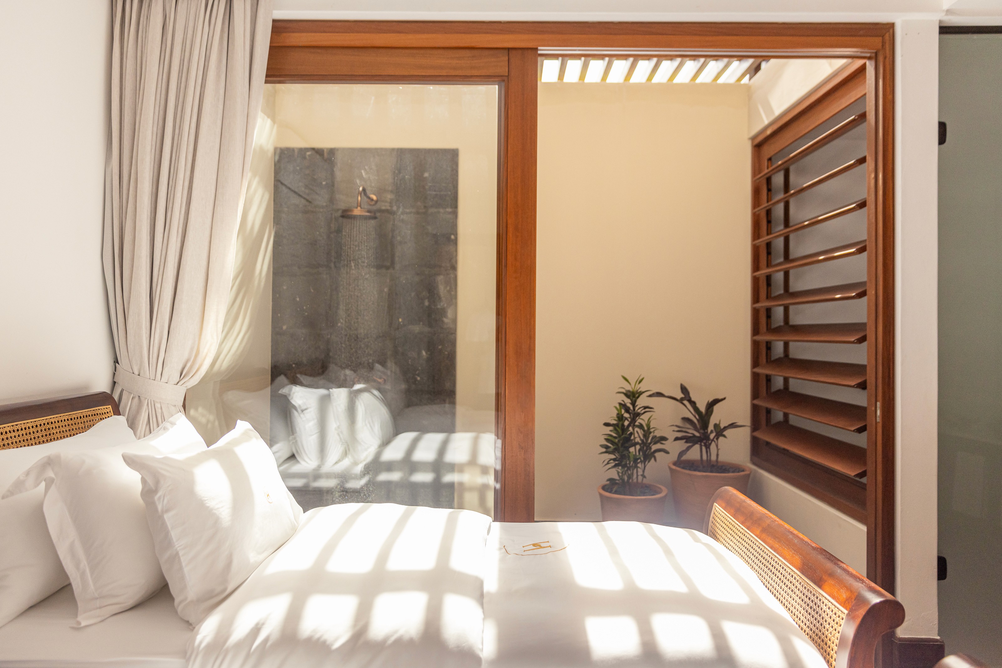 There are places that are not immediately visible – yet hold their own unique magic. The Éter Suite, located on the lower level, is one such place. Those who enter discover a small, luxurious retreat full of surprises. A stylish outdoor shower enhances the feeling of exclusivity and seclusion. In this suite, one can sense the essence of ether – the invisible force that connects everything.